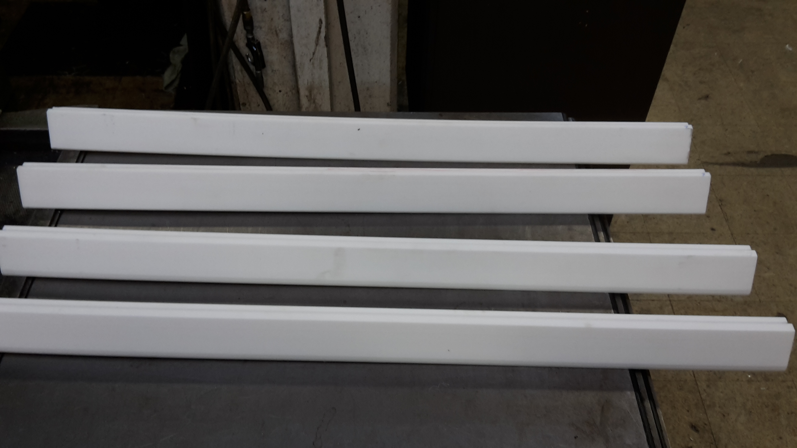 These sizing inserts for an extrusion die system are milled out of virgin Teflon. The angled sizing inserts allow material to flow out of the machine round. Then the material gets squeezed through to flatten.